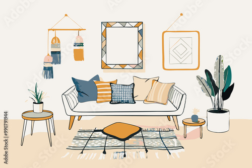 Modern Living Room Interior with Chic Decor and Bohemian Elements
