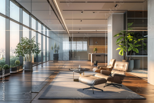 modern office interior. free open work space with large panoramic windows. work room in modern design.office foyer