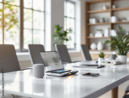 Modern office workspace with smart technology and minimalist design