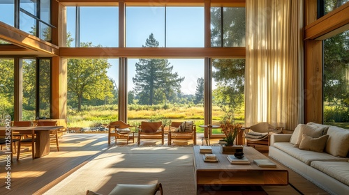 Modern Open Living Space with Natural Light and Scenic View