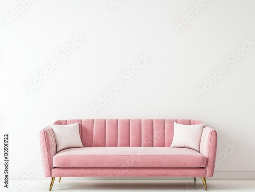 Modern pink sofa against a white wall