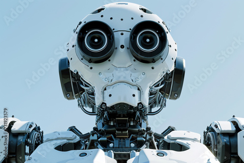 modern robot portrait, close up, blurred background. Artificial intelligence in future life. AI Generated