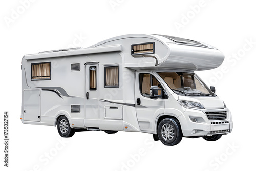 Modern RV motorhome camper van with solar panels side view isolated on transparent background, luxury travel vehicle illustration