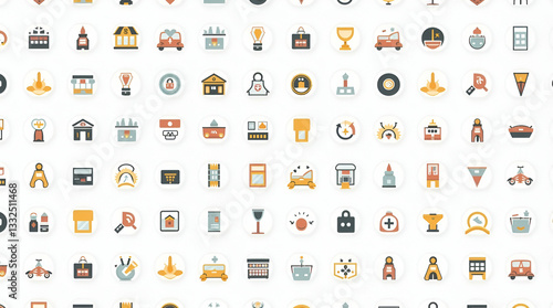 Modern Seamless Tile Pattern with Urban Icons and White Space Design