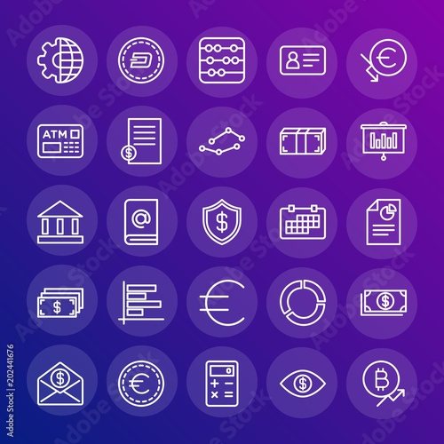 Modern Simple Set of business, money, charts Vector outline Icons. Contains such Icons as salary, action, button, money, business, usd and more on gradient background. Fully Editable. Pixel Perfect.