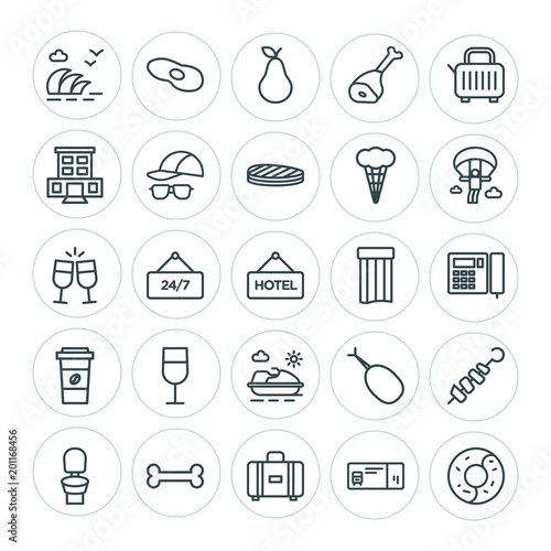 Modern Simple Set of food, hotel, drinks, travel Vector outline Icons. ..Contains such Icons as barbecue, food, fresh, suitcase, service and more on white background. Fully Editable. Pixel Perfect