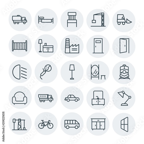 Modern Simple Set of transports, industry, furniture Vector outline Icons. Contains such Icons as chair, bike, building, furniture, power and more on white background. Fully Editable. Pixel Perfect