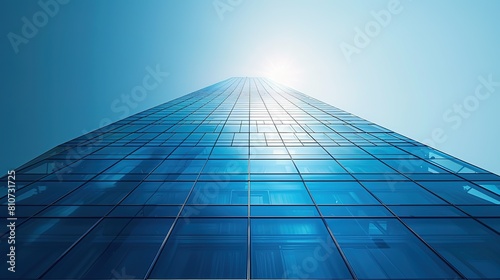 Modern skyscraper against a clear blue sky