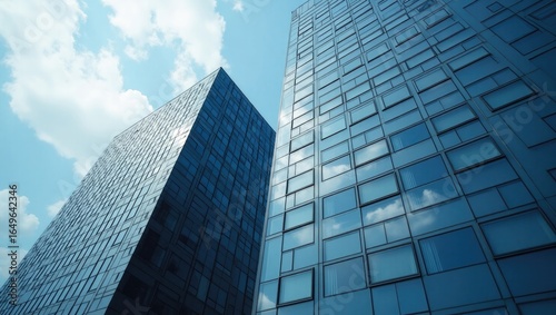 Modern skyscrapers against a partly cloudy sky.