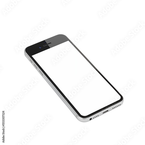 Modern smartphone with a blank white screen and silver metallic frame isolated on transparent background