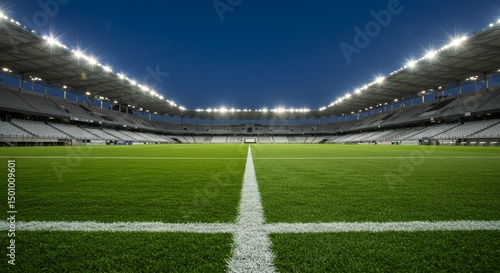 Modern Soccer Stadium at Night - Empty soccer stadium at night, illuminated by bright lights. Ready for a game