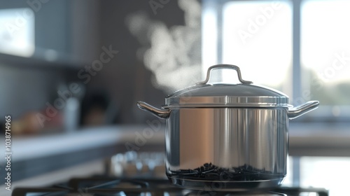 Modern stainless steel pot on a kitchen stove