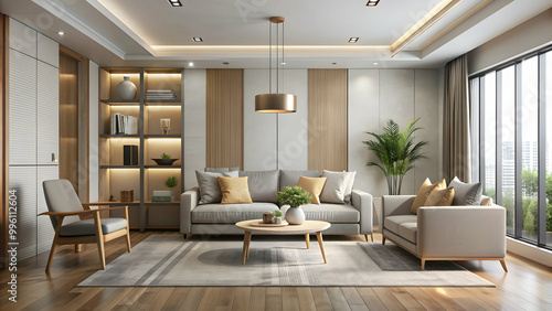 Modern style interior room with minimalist design and neutral color scheme, modern, style, conceptual, empty