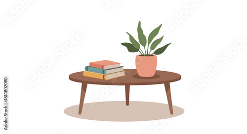 Modern Tabletop Oasis: A minimalist tabletop arrangement featuring a stack of books and a potted plant, perfectly combining reading and nature to elevate the charm of home decor