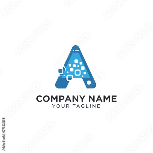 Modern Tech Logo Featuring Letter A with Pixelated Design and Blue Gradient.