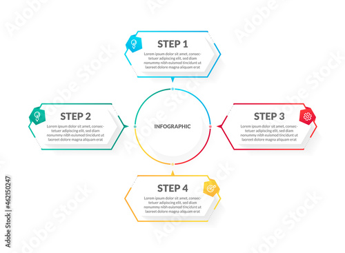 modern white colorful 4 step timeline infographic. perfect for presentation, process diagram, workflow, and banner