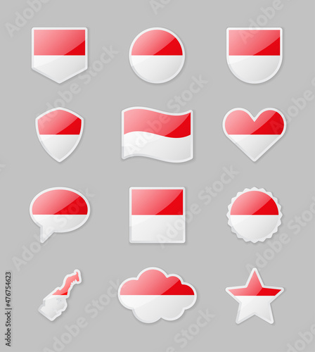 Monaco - set of country flags in the form of stickers of various shapes.