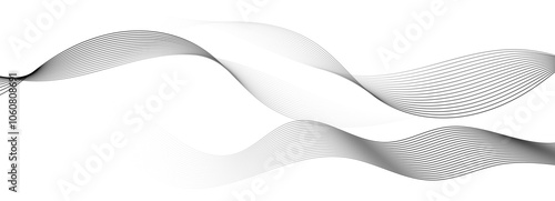 Monochrome abstract wave line background with smooth flowing curves. Vector illustration.