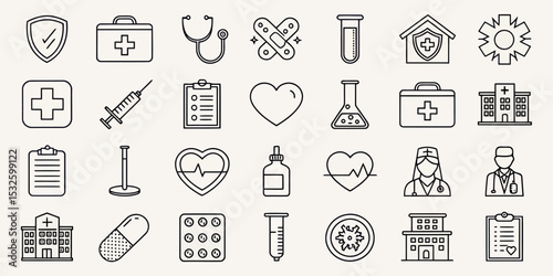 Monochrome Editable Stroke Icon Set of Healthcare and Medical Services
