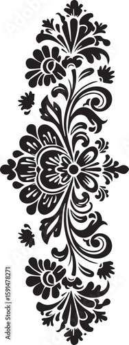 Monochrome floral vector divider, classic folky flower pattern, Adobe Illustrator Artwork