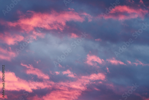 Moody grey blue sky with pink tinted clouds