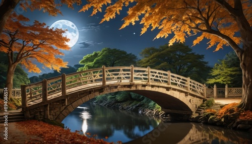 Moonlit Bridge Over a Stream.