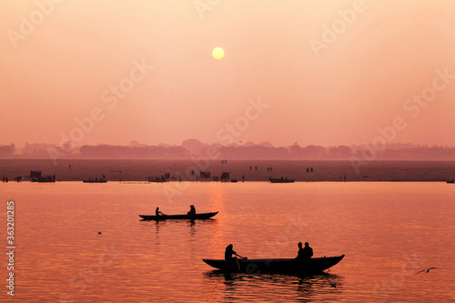 Morning activities at River Ganges during sunrise, Varanasi, Ind