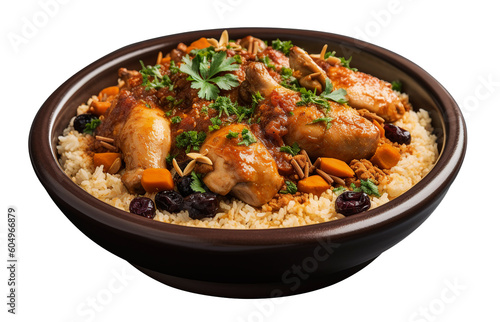 Moroccan chicken on transparent background. Generative AI.