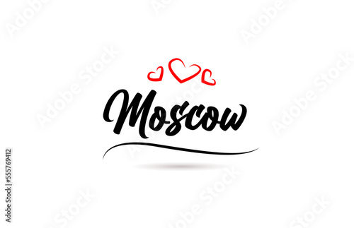Moscow european city typography text word with love. Hand lettering style. Modern calligraphy text