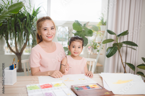 Mother teaches her child how to draw