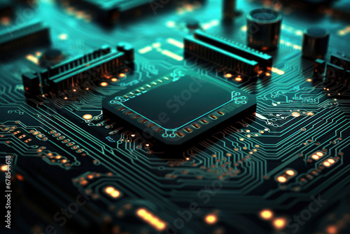 Motherboard of a computer or other electronic equipment. Close-up. Powerful multi-core processor.