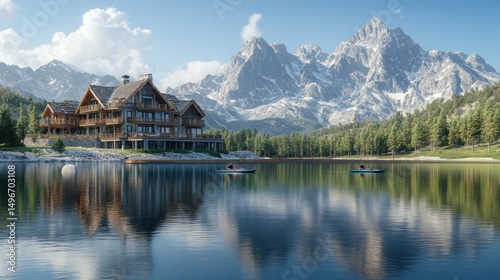 Mountain chalet by a serene lake