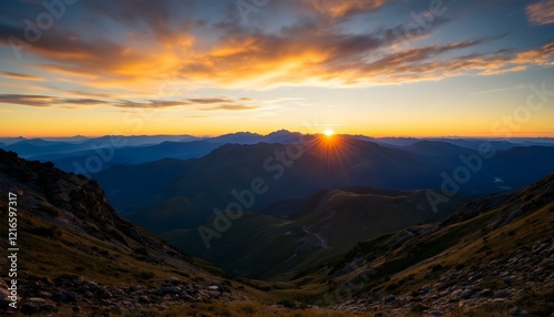 Mountain landscape at sunset