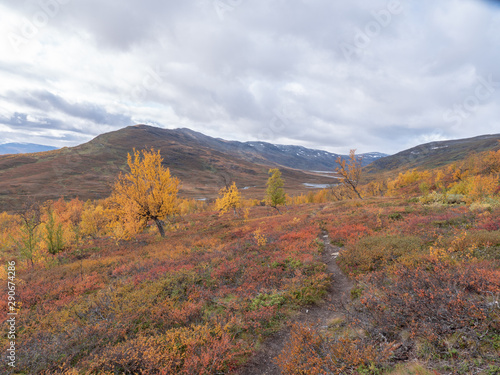 Mountain landscape in autumn. Abisko national park in Sweden.