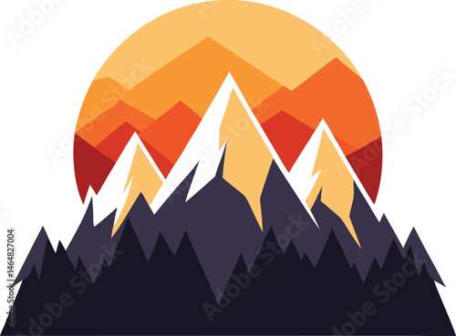Mountain Landscape Vector Illustration: Geometric Peaks, Sunset, Nature Graphic Design, Outdoor Adventure Logo, Mountain Range Art