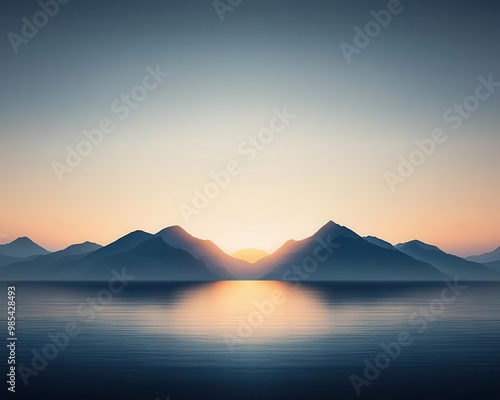 Mountain range forming a silhouette of Earth against a sunset ocean backdrop, symbolizing nature s balance, serene colors, ultrarealistic