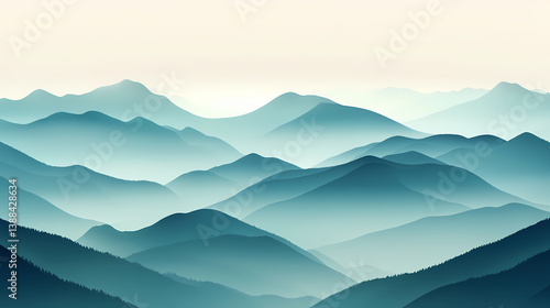 Mountain ridge with drifting fog, distant peaks, 3d illustration. shadow ridge. illustration. Drifting Shadows. Illustration