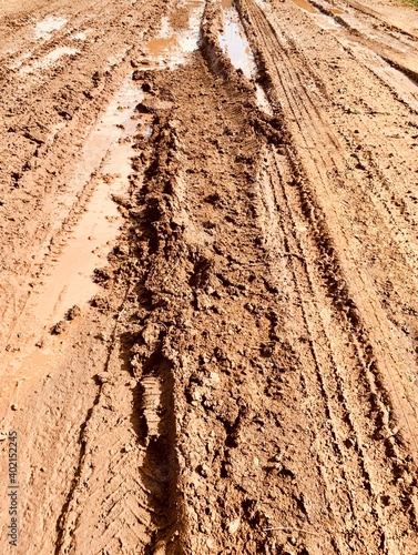 Muddy bumpy path in detail. Impassable road