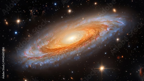 Multi-color galaxy with radiant spiral arms in cosmic void, ethereal and bright