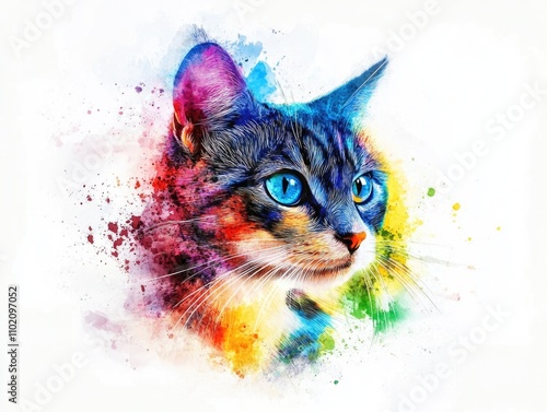 Multicolored Cat with Blue Eyes