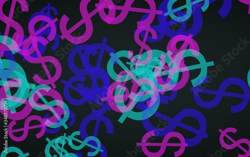 Multicolored translucent dollar signs on dark background. Red tones. 3D illustration
