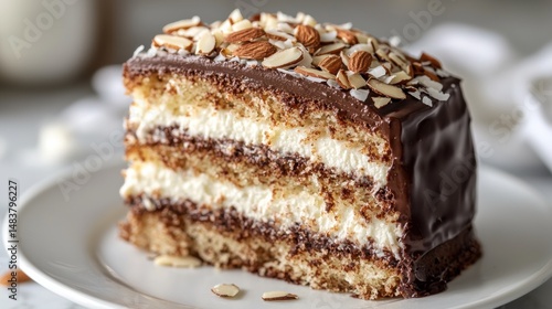 Multilayered chocolate cake topped with glossy ganache autumn setting