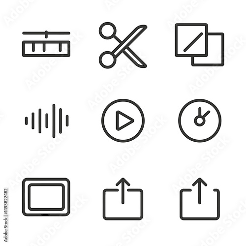 Multimedia and editing linear icons set. audio, video, and design tools