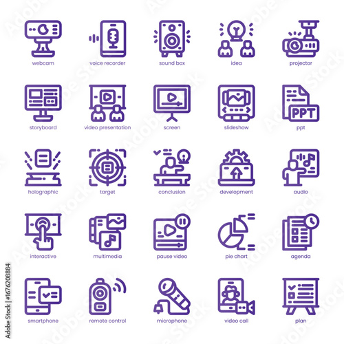 Multimedia Presentation Icon pack for your website, mobile, presentation, and logo design. Multimedia Presentation Icon line basic color design. Vector graphics illustration and editable stroke.