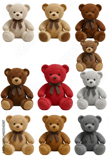 Multiple Teddy Bear Toys in Various Colors on Transparent Background