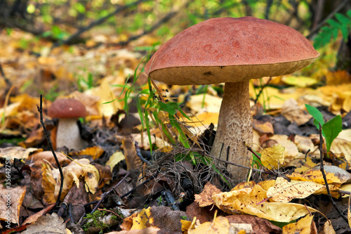 Mushroom in the autumn forest.