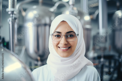 Muslim woman in hijab clothes in office building modern woman modern world generative AI