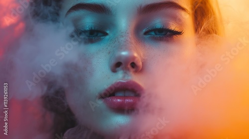 Mysterious Freckled Woman in Smoky Haze
