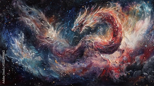 Mystical Ink Painting of a Celestial Dragon Twisting