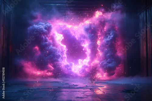 Mystical Portal: Glowing Purple and Pink Nebula in Abandoned Room